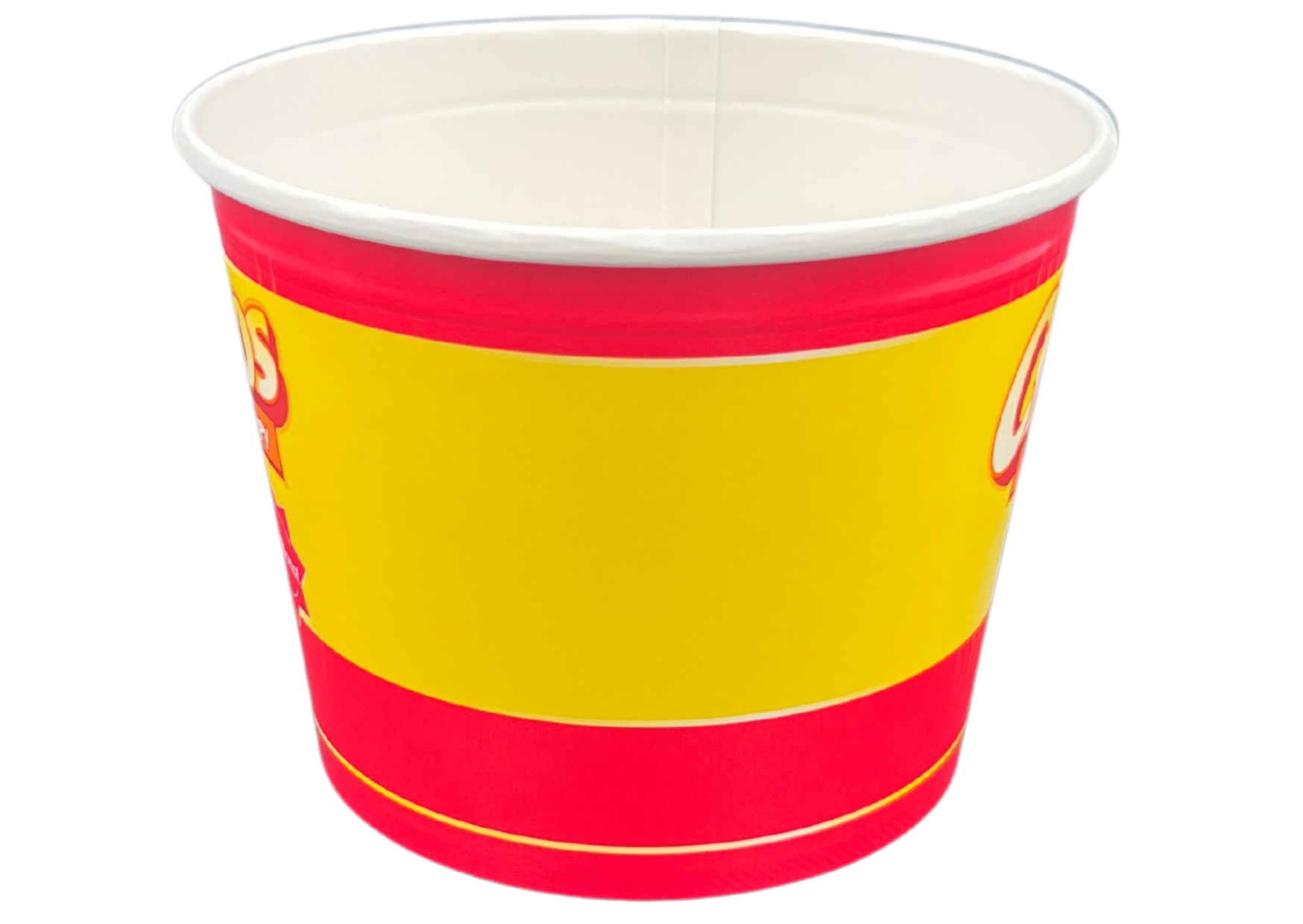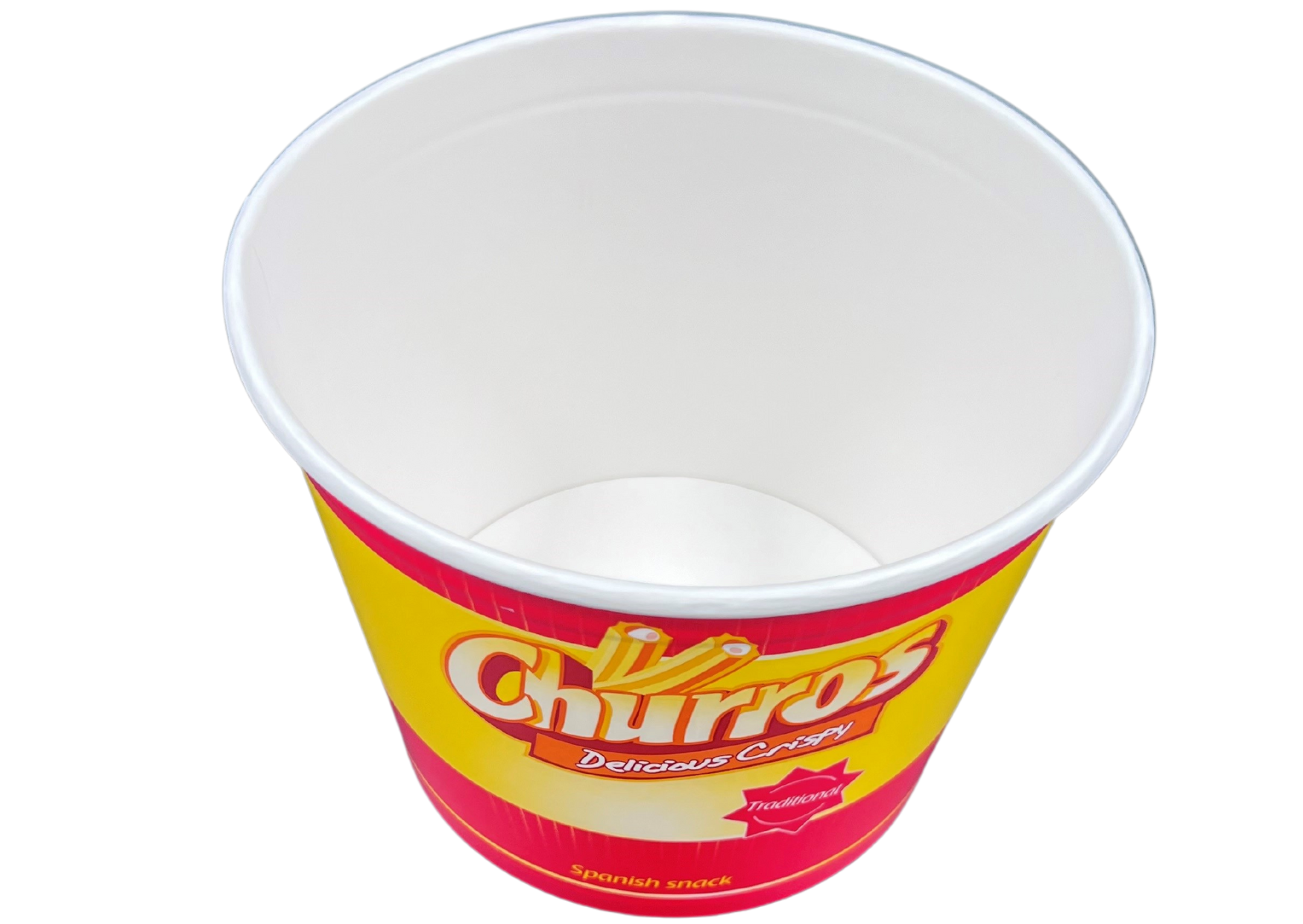 Dieser robuste Eimer aus Pappe eignet sich perfekt zum Servieren einer großzügigen Portion Churros. Dank der fettabweisenden Innenschicht bleibt der Eimer stabil und sauber. Ideal für Events, Festivals und Food-Konzepte, bei denen Erlebnis und Convenience zusammenkommen.
