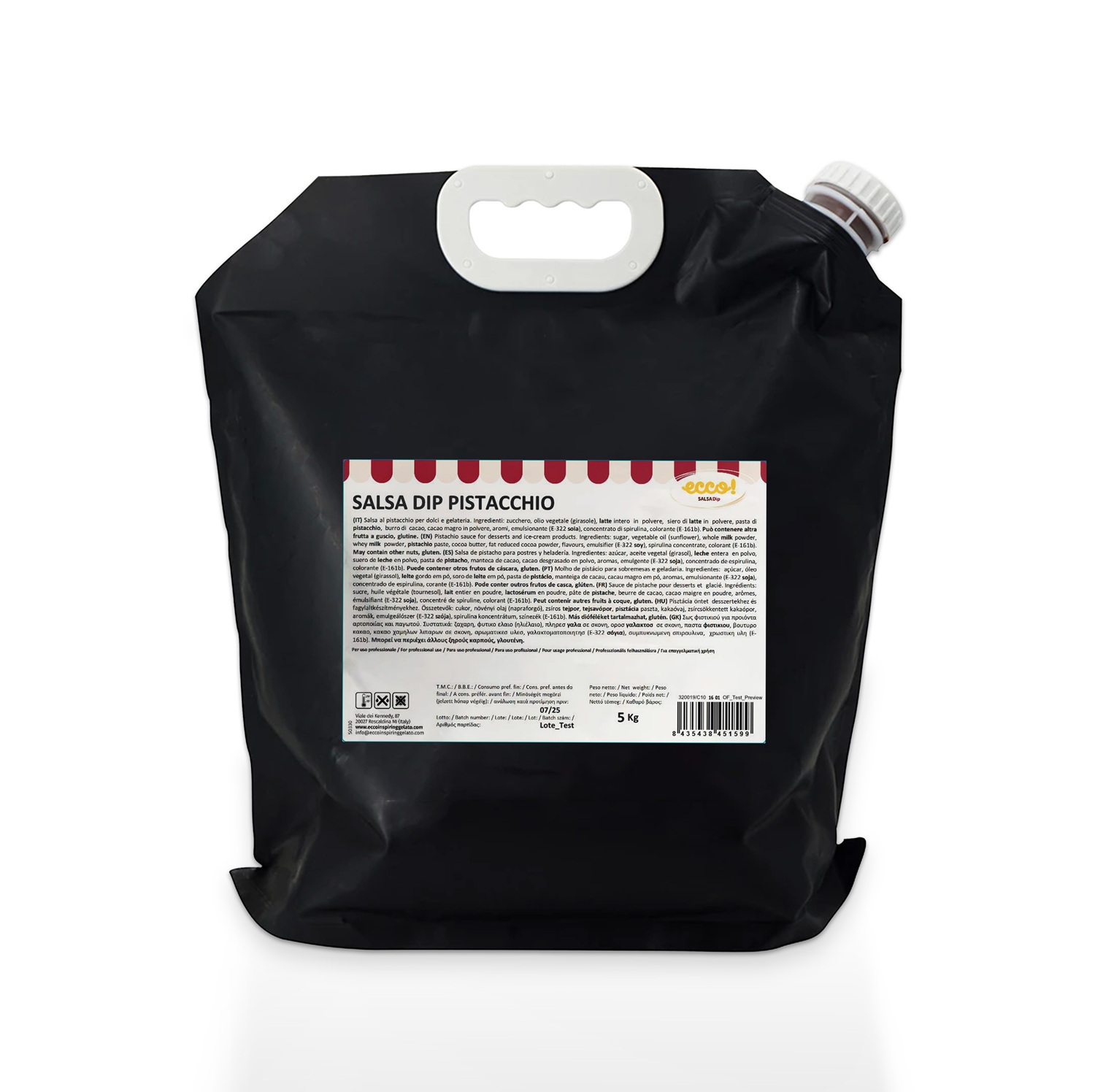 Flüssige Pistazien-Schokolade. Diese Sauce kann heiß oder kalt serviert werden, auch mit Spender/Pumpe. Hochwertige Sauce mit einem tollen Pistazien-Schokoladen-Geschmack. Viele Anwendungsmöglichkeiten für süße Produkte und Desserts. Diese Schokolade verfestigt sich nicht und behält daher ihren vollen Geschmack. Praktischer Vorteil bei der Verwendung ist, dass die Schokolade nicht erhitzt werden muss, um das Bain-Marie oder die Serviereinheit nachzufüllen.
