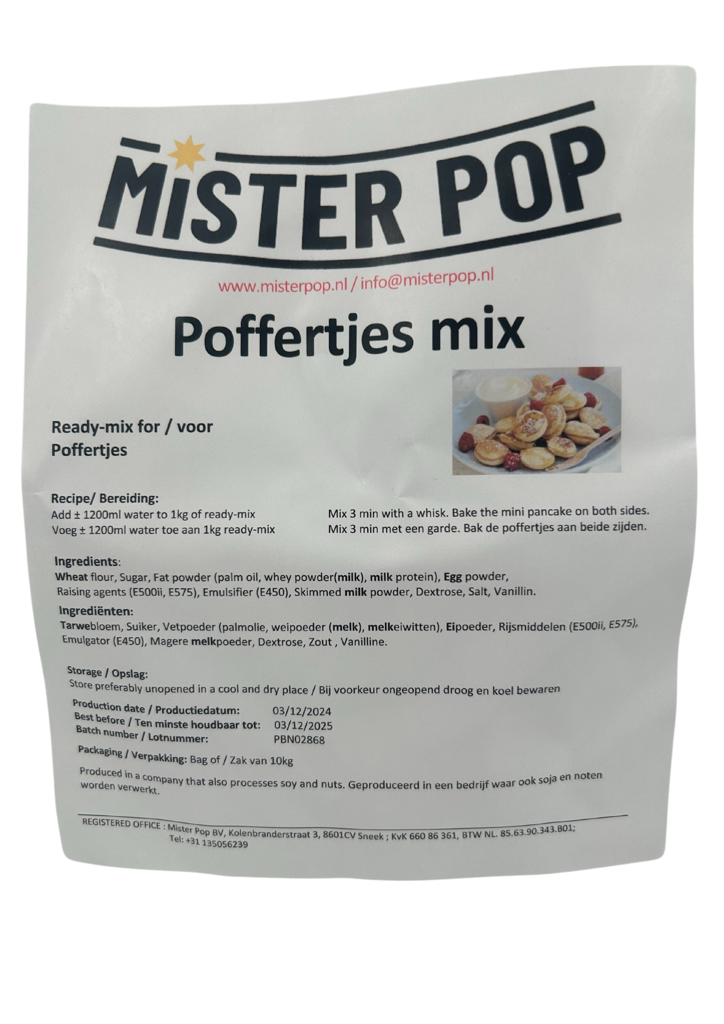 Mischungsverhältnis: 1 Kilogramm Poffertjes-Mix + 1,2 Liter Wasser